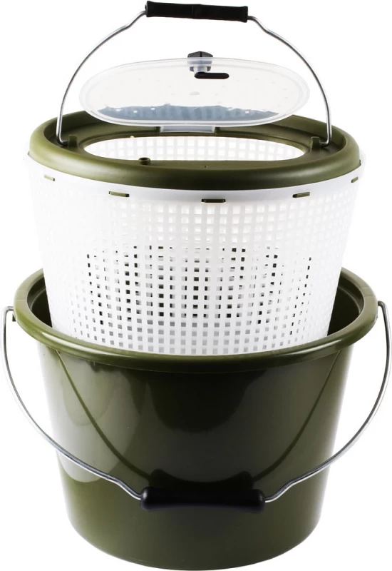 Emmers van 10 en 15 liter voor het opslaan van aasvis.