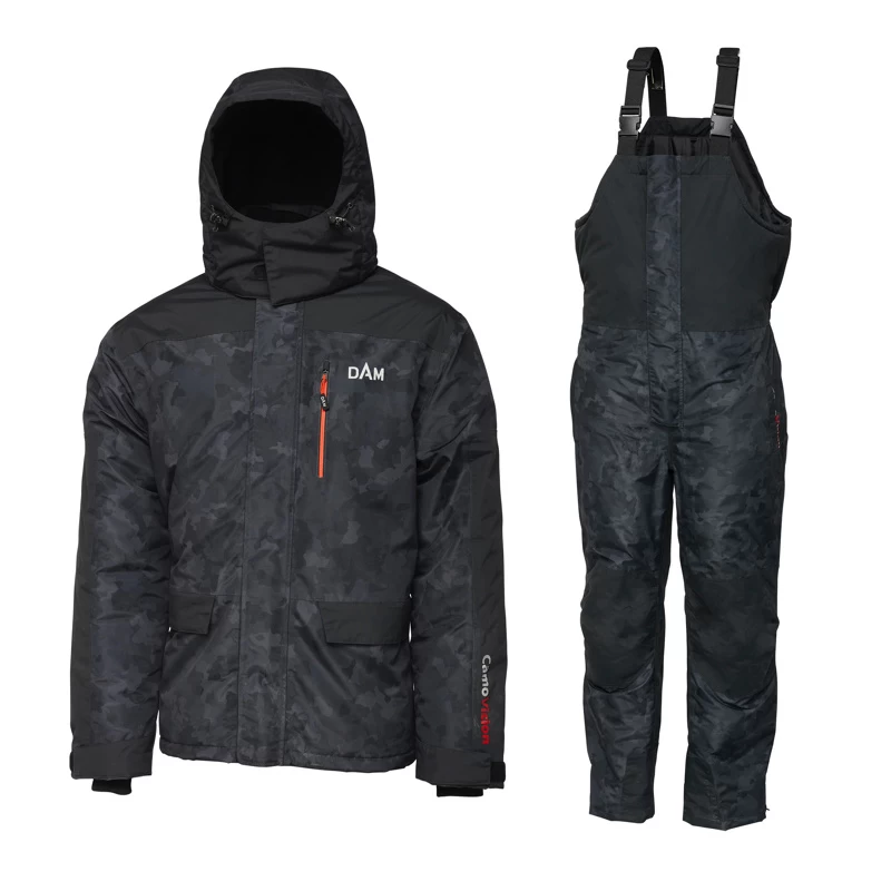 Dit 2-delige pak houdt je warm en droog op winderige, koude dagen. Duurzame stof van 100% polyester bedrukt in de populaire CamoVision zwart/grijze print, gecombineerd met zwarte, versterkte stof op de meest blootgestelde plaatsen, wat de duurzaamheid verhoogt.