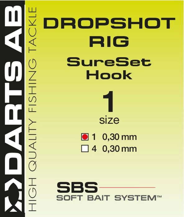 Darts Dropshot rig met widegape haak. Deze kant en klare leader is geschikt voor het vissen met wat groter kunstaas rond de 10cm.