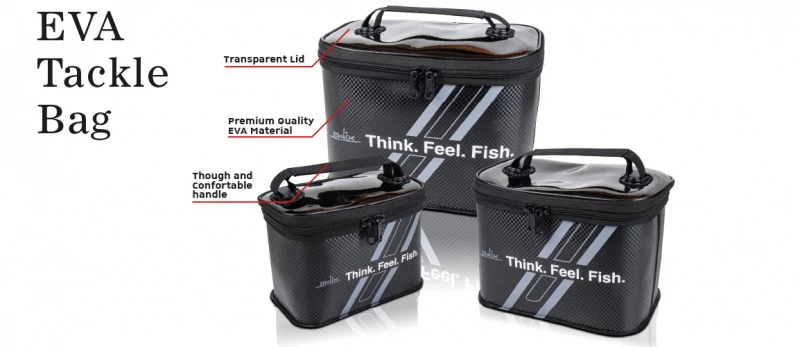 De EVA Tackle Bag is een kleine tas met handvat, ideaal voor het opbergen en vervoeren van kunstaas, accessoires en terminal tackles. Het bovenste gedeelte is transparant om de inhoud gemakkelijker te kunnen identificeren zonder de tas te moeten openen. Hij is gemaakt van hoogwaardig EVA.