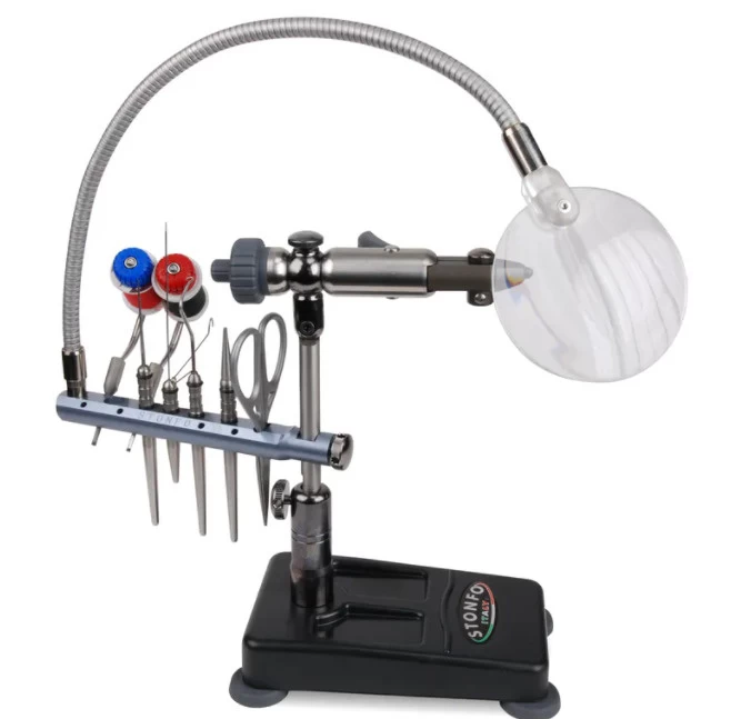 Gemaakt van geanodiseerd aluminium heeft een reeks van 15 gaten van verschillende vorm, grootte en hoek, die de plaatsing van de meeste bestaande gereedschappen mogelijk maken. Geschikt voor de aansluiting van loepartikel 642.