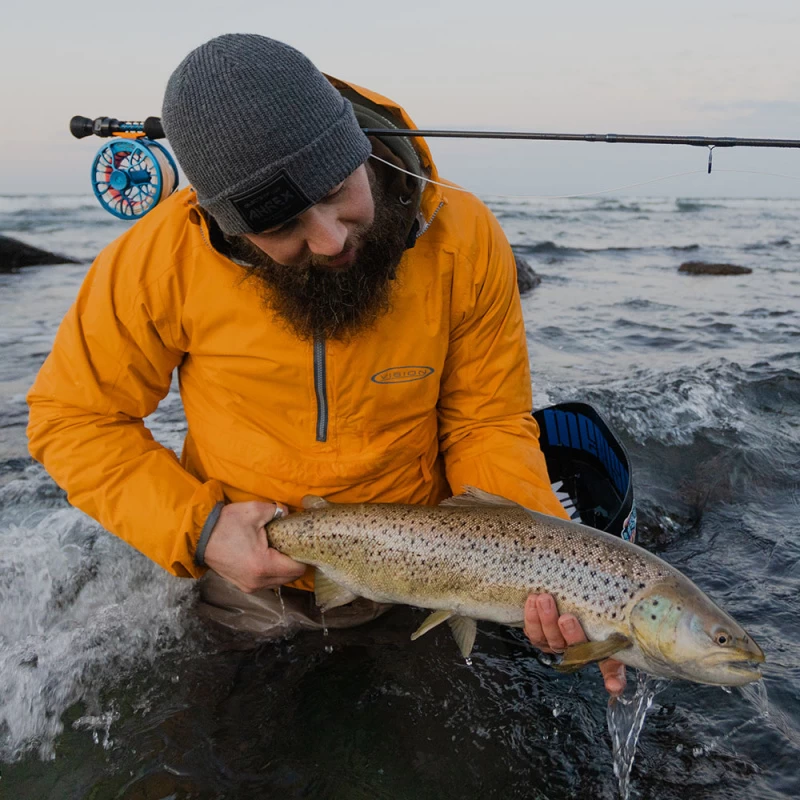 Superlichte anorak voor vissen en activiteiten na het vissen. Gemaakt van een 2,5 laag Rip Stop Nylon. De eenvoudige constructie stelde ons in staat om dit super licht en als dit packs in kleine is het gemakkelijk te gooien in een zak van uw vissen tas, zodat het ’s altijd bij je als de regen je vindt. De grote buikzak heeft een kleiner gaaszakje binnenin voor je telefoon of accessoires en er is ook een accessoirelus voor kleinere items.